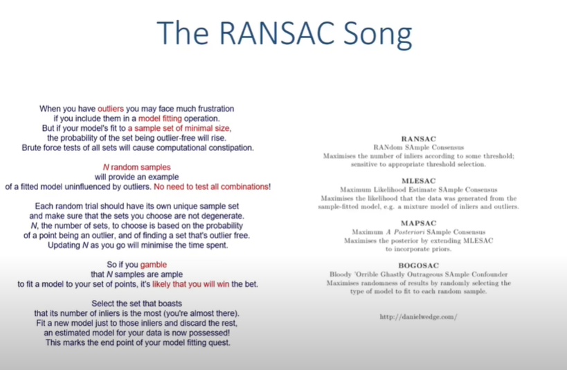 - RANSAC은 outlier가 많은 데이터에서 쓸수있는 robust 한 모델임
